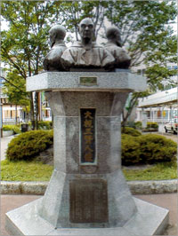 一関駅を降りると正面に大槻三賢人の胸像が目に止まる。正面が玄沢(1757−1827年)、左に盤渓(玄沢の次男で漢学者)、右に文彦(玄沢の孫で日本最初の国語辞典「言海」の編纂者)である。