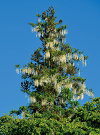 とは言いつつ、今回は106号沿いの景色ではなく別の場所で最近見つけたお気に入りのショット2つを載せてみました。一つは緑の濃くなった広葉樹の林の上、ちょこんと顔を覗かせた杉の木を白い藤の花が着飾ってくれています。Xmas TreeならぬSummer Tree(?)